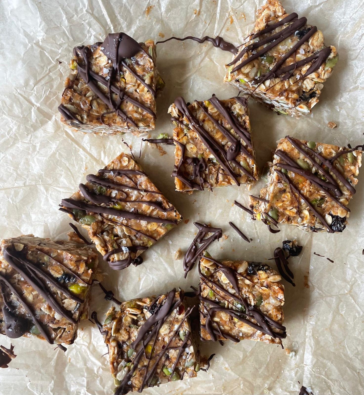 Carefully melt the chocolate, ensuring it doesn't get too hot, and using a spoon, drizzle it over the flapjacks before storing in the fridge.